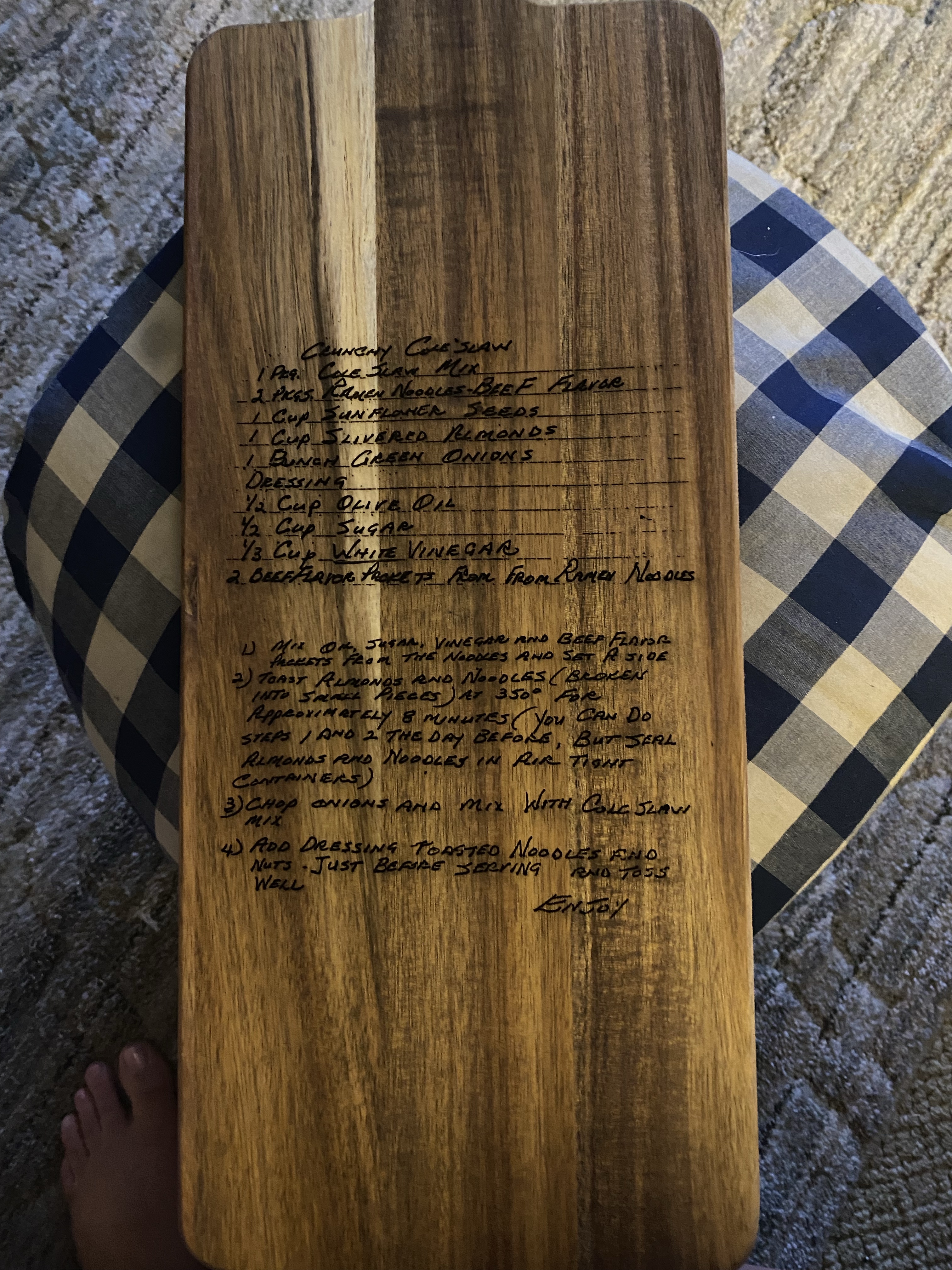Do you have a family recipe in the hand writing of a loved one? We can take that recipe and engrave it so you can enjoy it for years to come. Contact us for more details. Prices start at $50