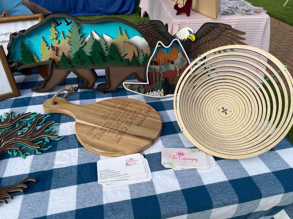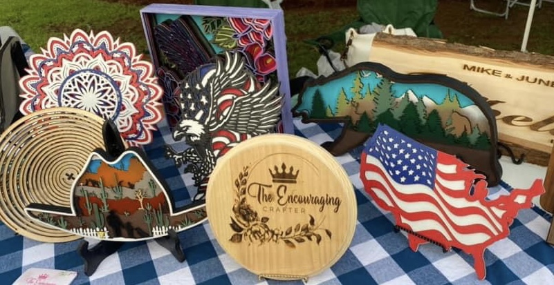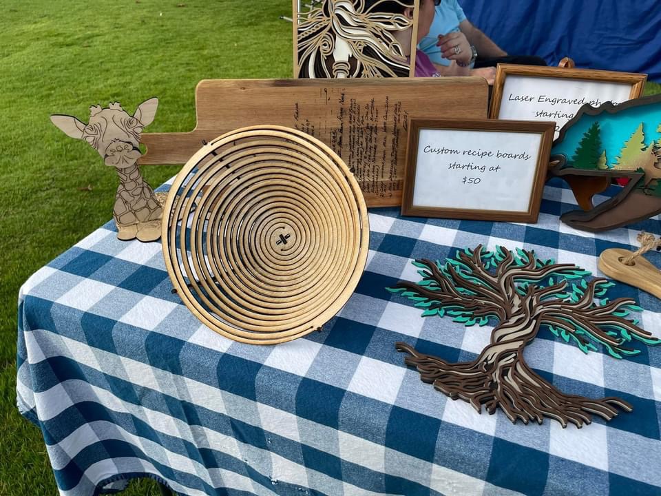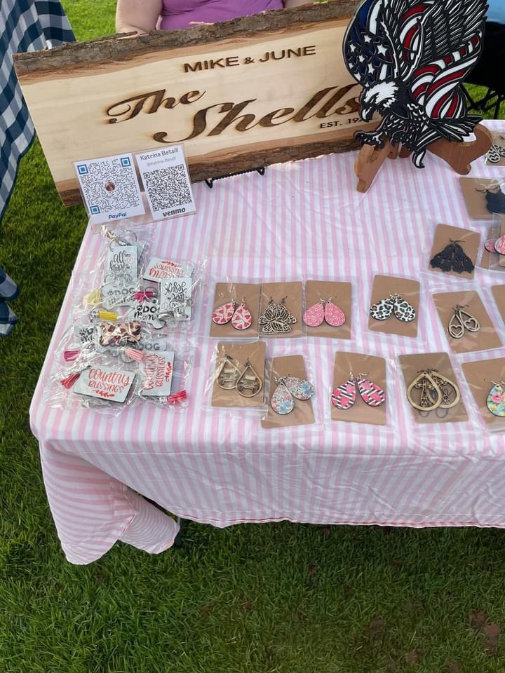 Below are a few photos from the last market we did in Monticello. We are going back on September 10th and then we will be at the Queen Bee Makers Market on September 17th in McDonough. We hope you will take the time out to come and see us! Whether you want something for yourself or you want to get an order in for that personalize gift for the holidays, we have some great items.